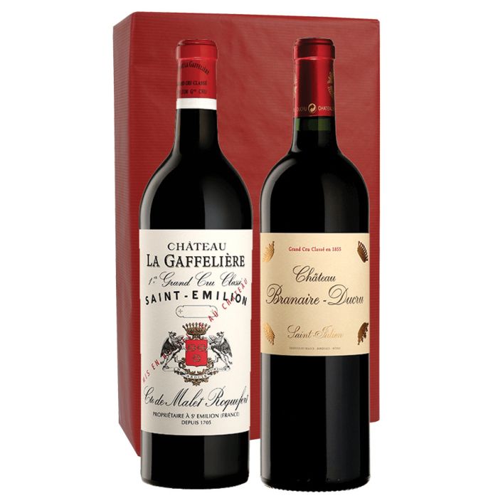 Coffret de 2 Crus Classés comprenant : 1 Saint-Emilion - Château La Gaffelière 2021 - Grand Cru Classé (75cl) 1 Saint-Julien - Château Branaire Ducru 2018 - 4ème cru classé (75cl)